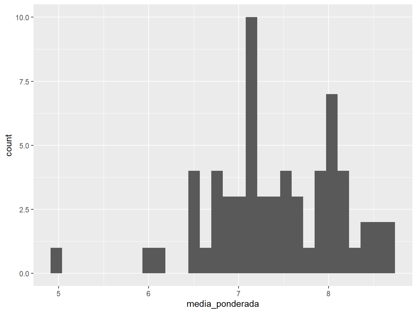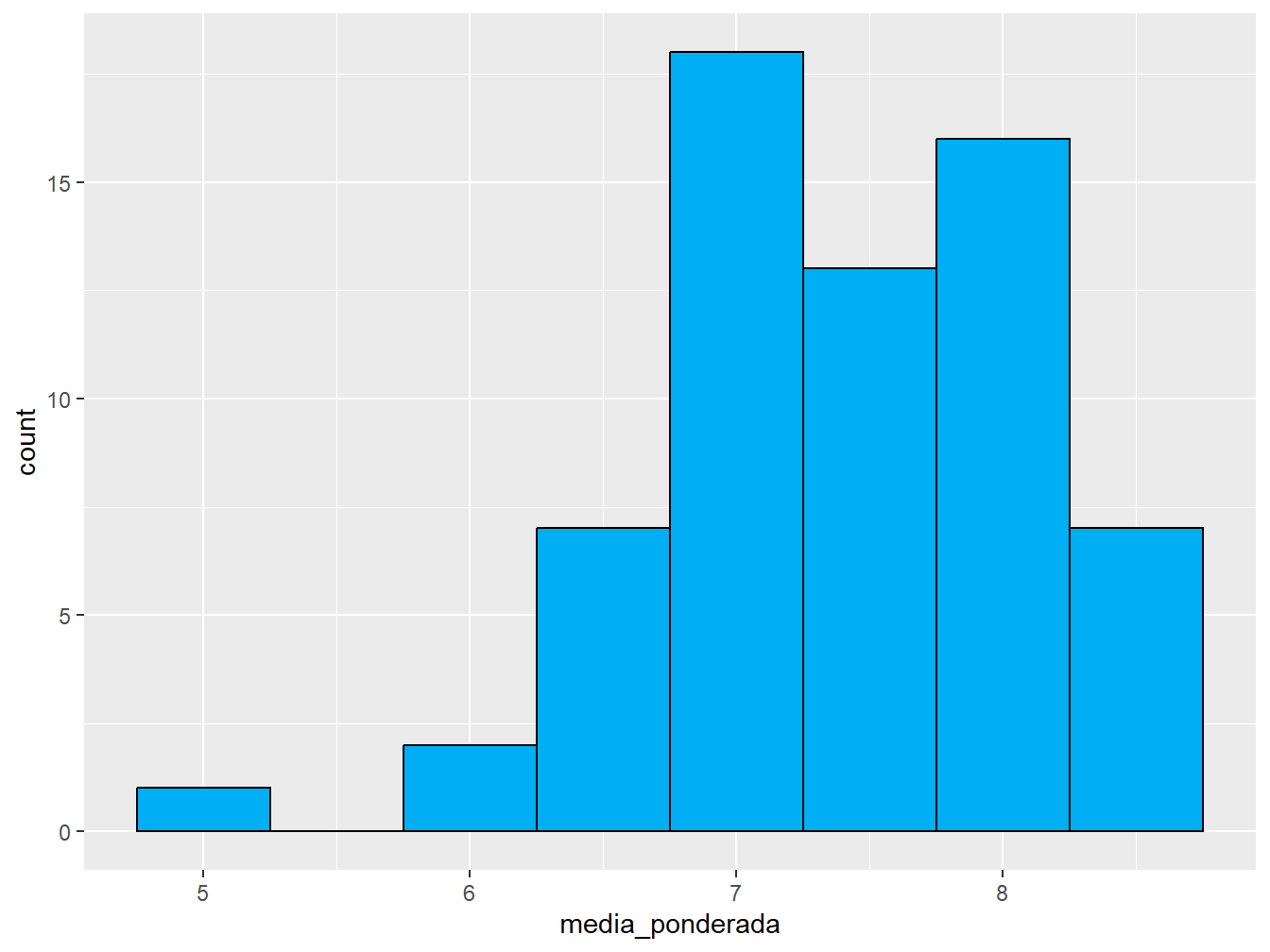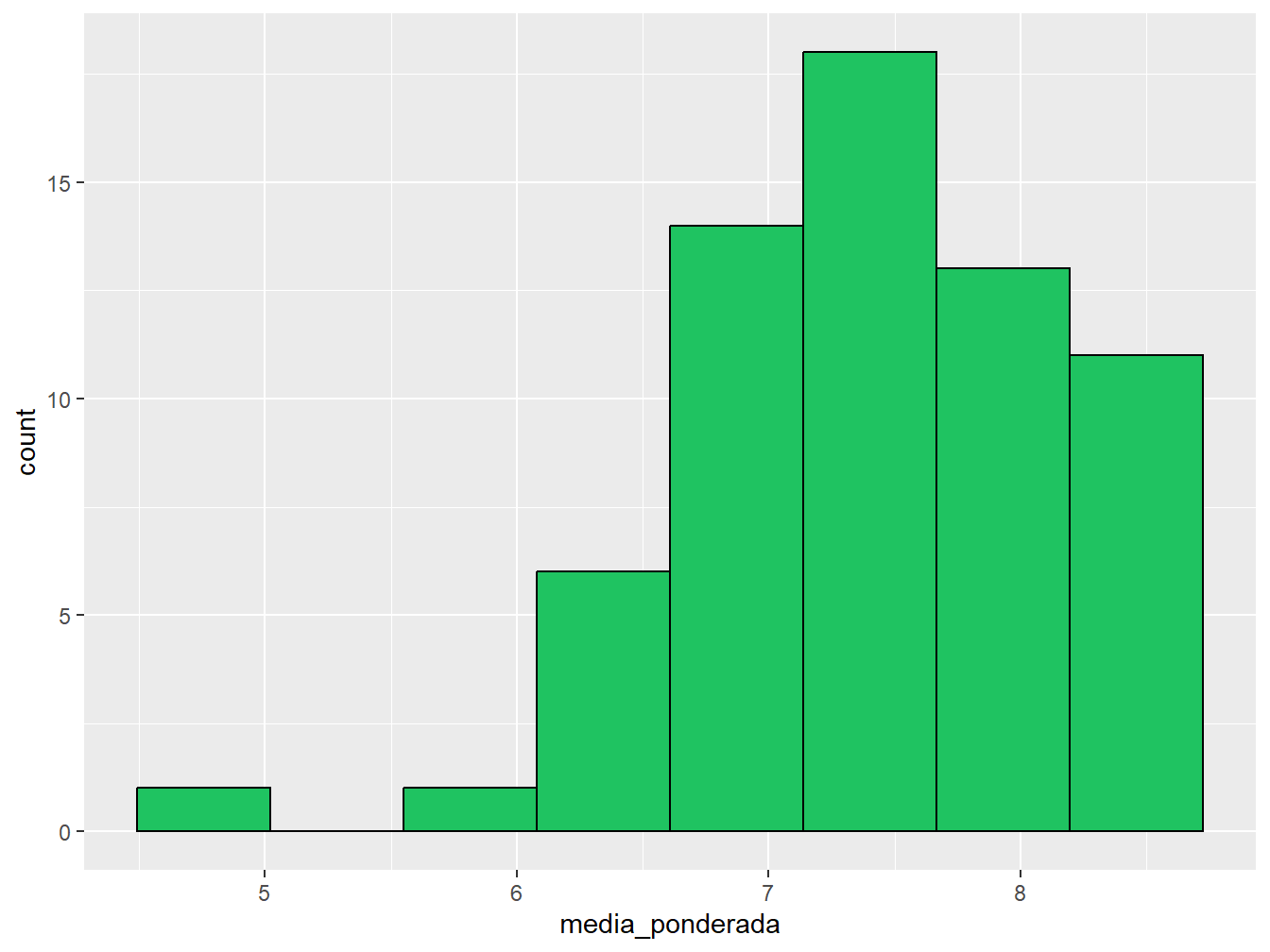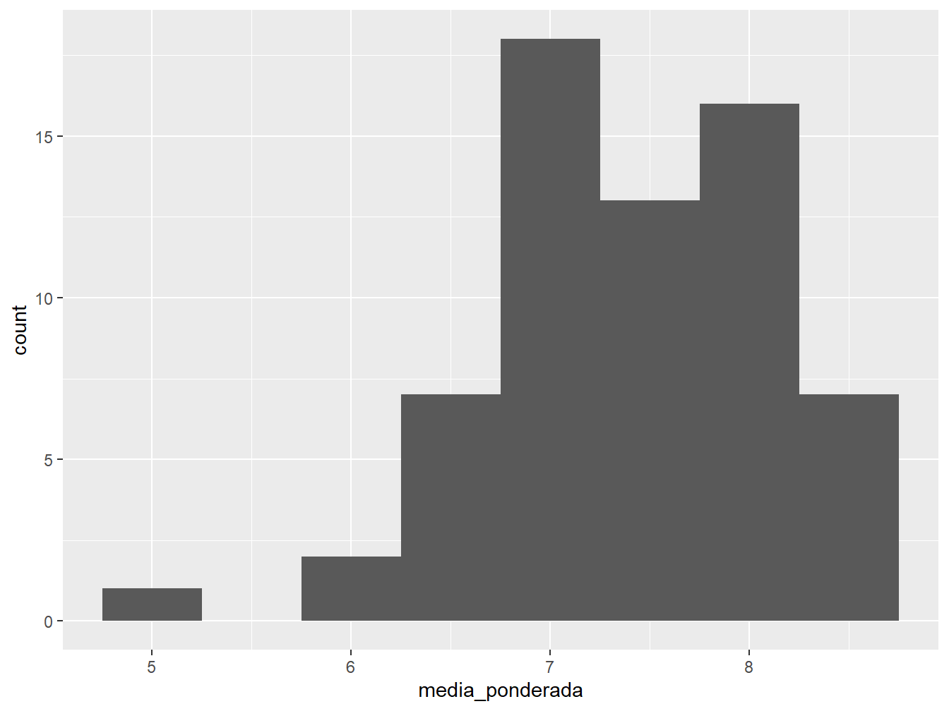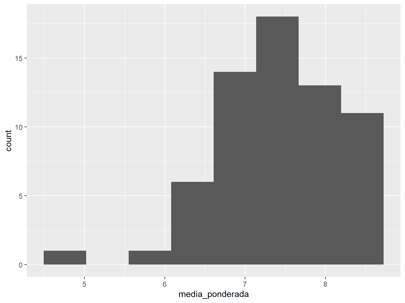 Neste primeiro caso, faremos um histograma referente à média ponderada dos alunos.